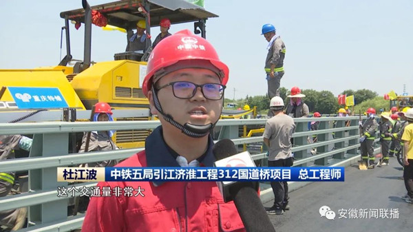 合肥西大門的312國道,交通量非常大,我們項(xiàng)目部也是攻堅(jiān)克難,盡早地把這個(gè)橋開通,這個(gè)鋪裝完成以后,進(jìn)行整個(gè)橋的動(dòng)靜態(tài)試驗(yàn),七月下旬交工驗(yàn)收。