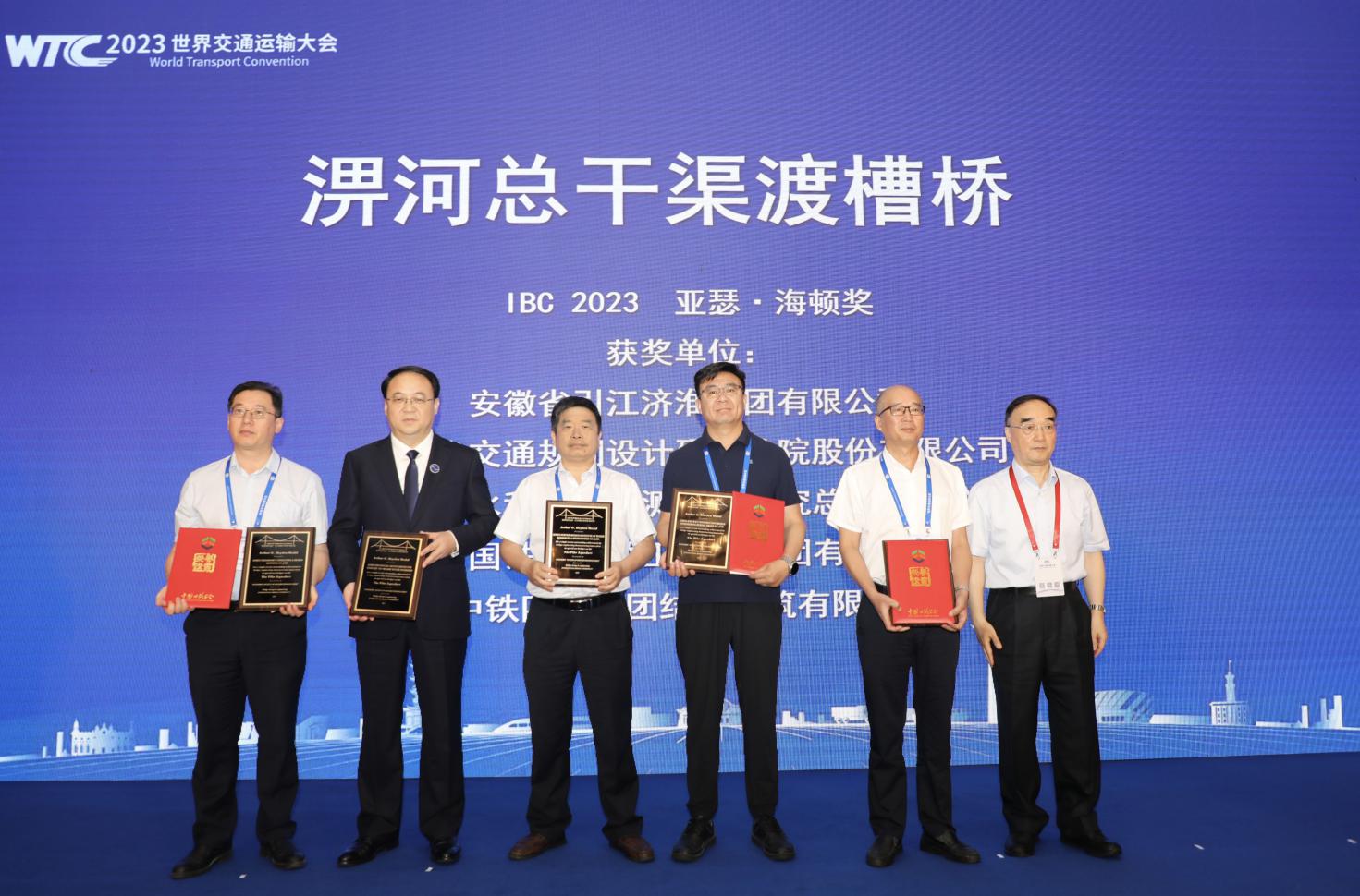 2023世界交通運(yùn)輸大會(huì)(WTC2023)為2023年度國(guó)際橋梁大會(huì)(IBC)唯一獲獎(jiǎng)的中國(guó)項(xiàng)目引江濟(jì)淮淠河總干渠渡槽“亞瑟·海頓獎(jiǎng)”頒獎(jiǎng)
