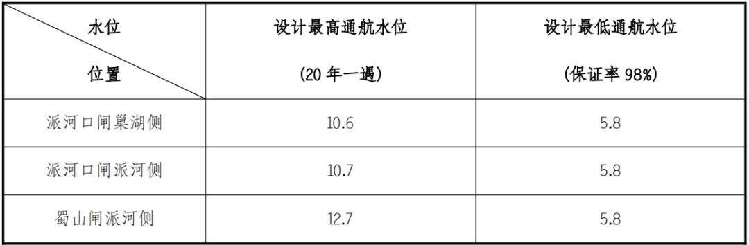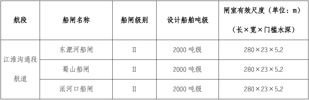 工程沿線建有5個錨地,分別為東淝河閘上、閘下錨地,蜀山閘上、閘下錨地,派河閘上錨地。