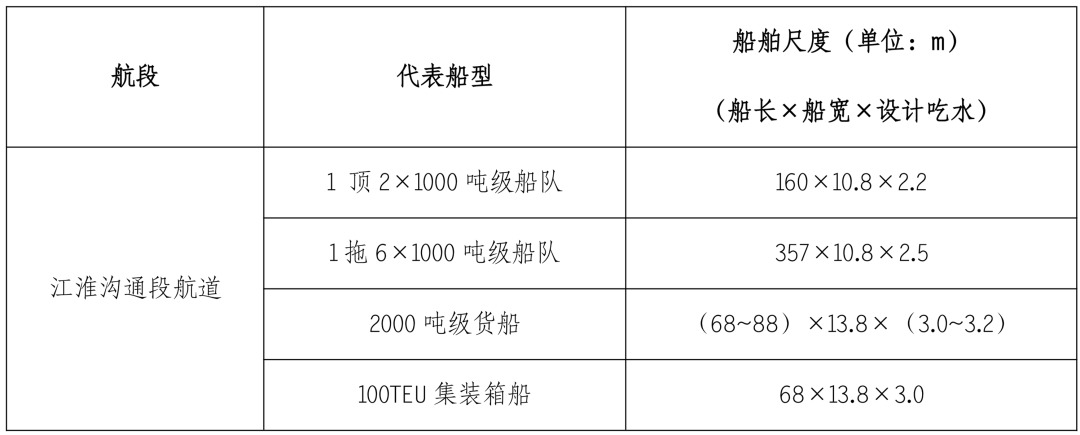 引江濟(jì)淮航道江淮溝通段航道等級為內(nèi)河Ⅱ級;巢湖湖區(qū)段10.8km,航道尺度3.8×90×550m(水深×底寬×彎曲半徑,下同),其中口門段底寬60m;瓦埠湖湖區(qū)段41.6km,航道尺度為3.7×90×550m;其他航段114.6km,航道尺度為4.0×60×540m。