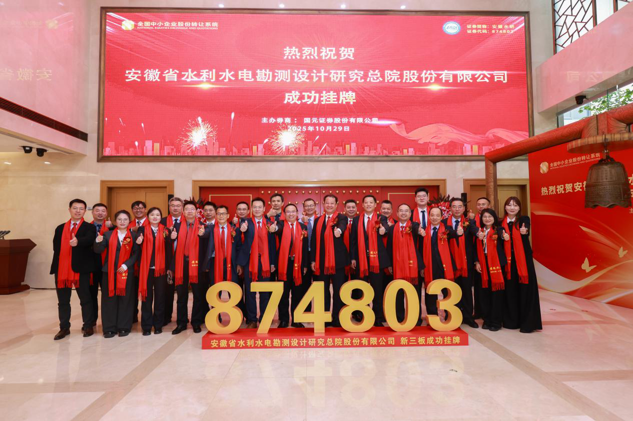 從佛子嶺水庫到淠史杭灌區(qū),從淮河上的 “三峽工程” ——臨淮崗洪水控制工程到安徽基礎(chǔ)設(shè)施 “一號工程” 引江濟(jì)淮工程,安徽水研數(shù)十年如一日,始終緊跟國家水利基礎(chǔ)設(shè)施建設(shè)與生態(tài)文明建設(shè)導(dǎo)向,長期服務(wù)安徽水利頂層規(guī)劃論證,深耕水利水電勘測設(shè)計(jì)領(lǐng)域,是區(qū)域水利建設(shè)的中堅(jiān)力量。此次登陸新三板,安徽水研將借助全國股轉(zhuǎn)公司這一國家級平臺,進(jìn)一步匯聚優(yōu)質(zhì)資源、激活發(fā)展新動能,在規(guī)范治理中提升核心競爭力,在資本運(yùn)作中拓寬發(fā)展空間,深刻踐行 “節(jié)水優(yōu)先、空間均衡、系統(tǒng)治理、兩手發(fā)力” 的新時期治水思路,以資本市場為依托,書寫水利事業(yè)高質(zhì)量發(fā)展的新華章。