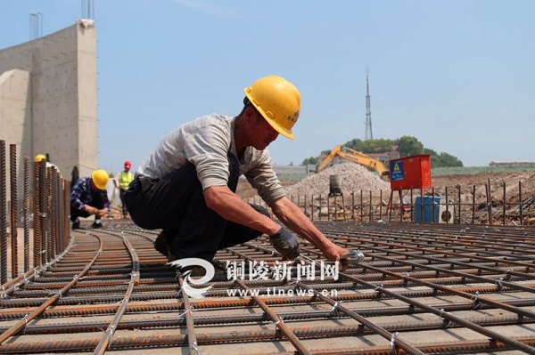 5月2日,記者在引江濟(jì)淮工程樅陽(yáng)樞紐節(jié)制閘施工現(xiàn)場(chǎng)看到,大型挖掘機(jī)、工程運(yùn)輸車(chē)等大型機(jī)械和施工人員正緊張有序作業(yè)。正在和工友們一起用鐵絲綁扎雷諾護(hù)墊,鋪設(shè)防沖槽的瓦工何池玉告訴記者,他來(lái)自安慶市迎江區(qū),今年因疫情影響沒(méi)有到外省務(wù)工,而是選擇參與到引江濟(jì)淮工程樅陽(yáng)樞紐的建設(shè)?!斑@個(gè)工程重大,質(zhì)量要求也高,工期又很緊,最近一段時(shí)間大家都是加班加點(diǎn)地在工作,‘五一’期間沒(méi)有一個(gè)回家的,確保按時(shí)按質(zhì)按量地完成每一項(xiàng)工作?!?/span>