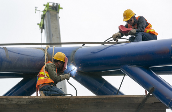 引江濟(jì)淮引起滬蓉鐵路改建工程上跨江淮運(yùn)河特大橋系桿拱順利合龍